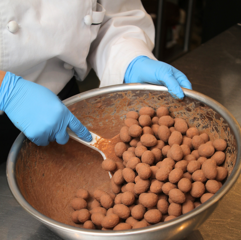 完成したショコラは、ひとつひとつ丁寧に、キャンディ包みで仕上げています。