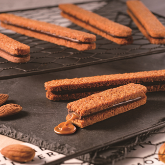 卵・砂糖・バターと合わせて焼き上げた、ザクザク食感のアーモンドクロッカン生地が特長です。